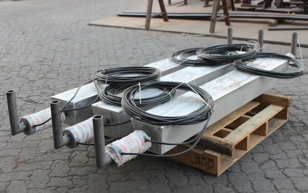 Customized according to hull area (block type 5~50kg, strip type 1500×500×500mm), with hot-dip galvanized steel core. Welding/bolting installation. Contact resistance ≤0.001Ω. Magnesium anodes are prohibited for marine vessels (due to excessive consumption + hydrogen embrittlement), while magnesium anodes for inland freshwater vessels require density control.